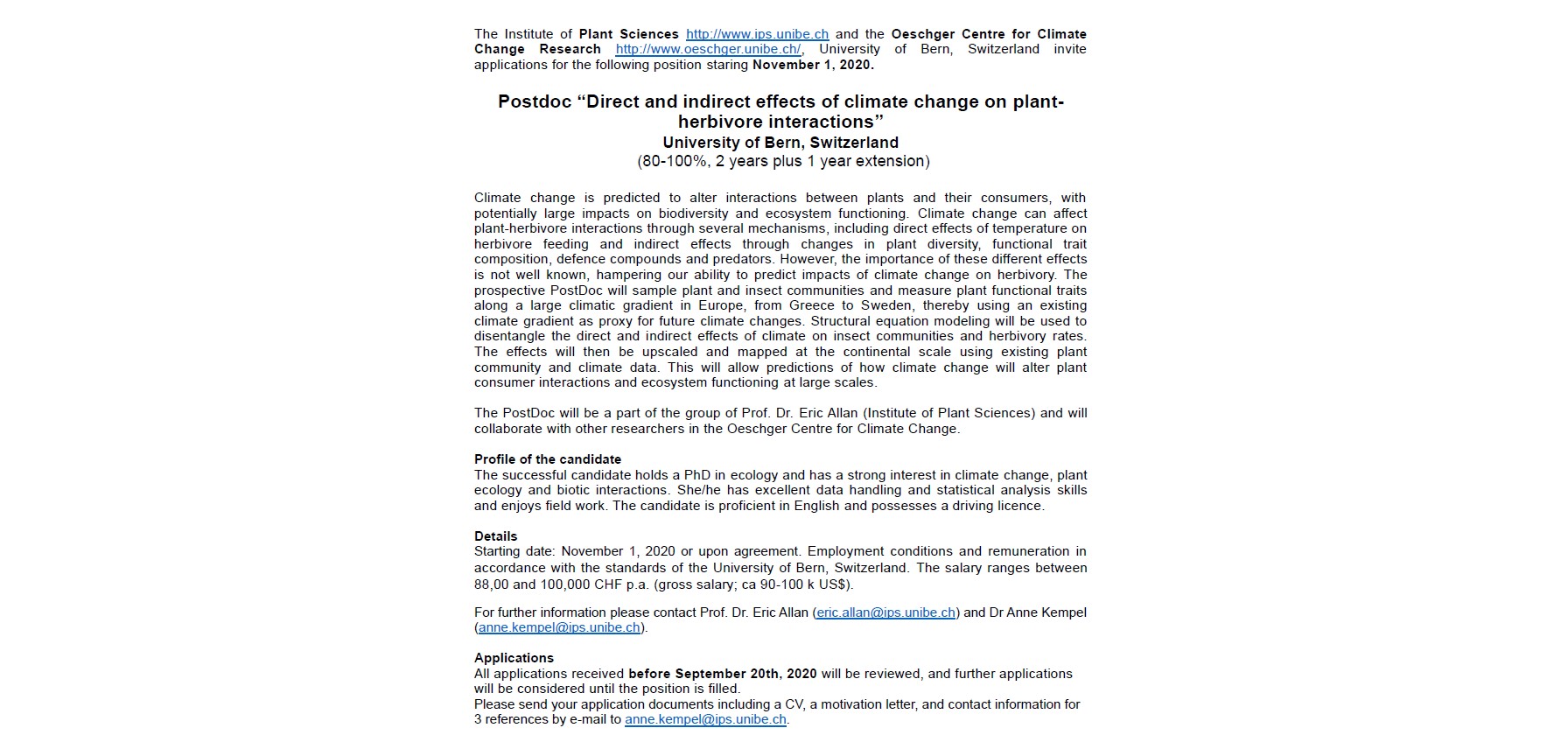 Annekempel On Twitter Interested In Climate Change Effects On Plant Herbivore Interactions We Offer A Postdoc Position In The Allanecology Lab Together With The Centreoeschger At The University Of Bern Unibern Please Retweet